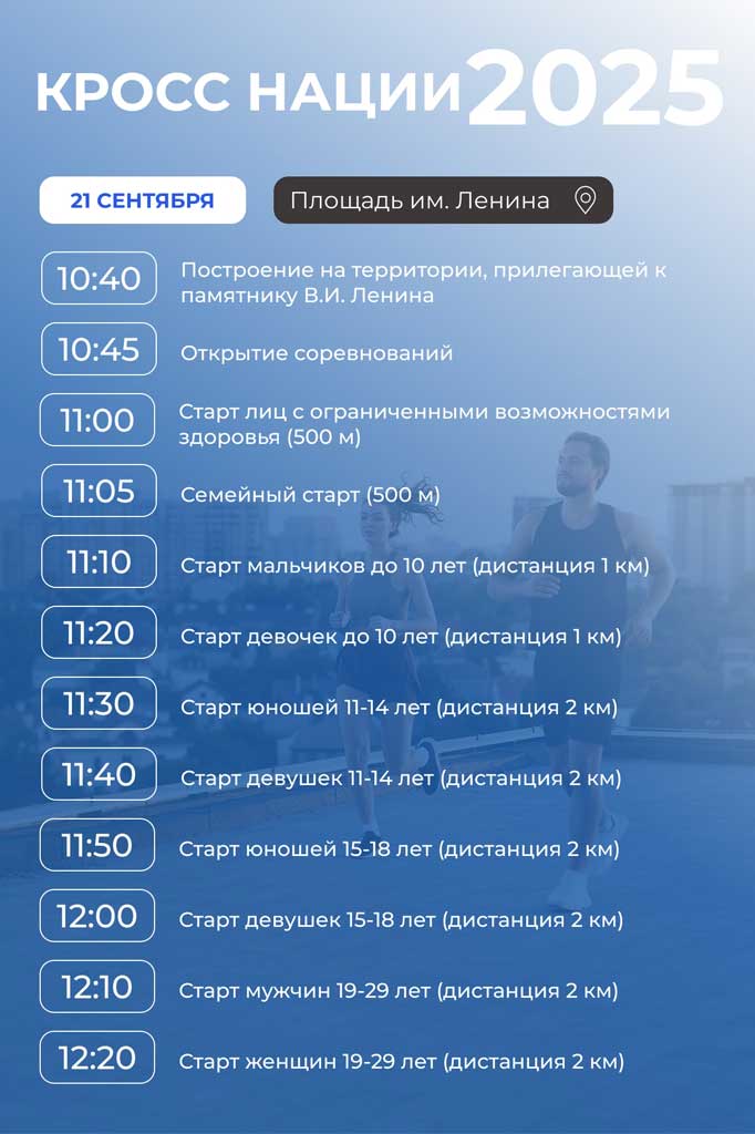 Предусмотрено 14 стартов для разных возрастных групп. В каждом забеге (возрастной группе) будут определены победители и призеры.