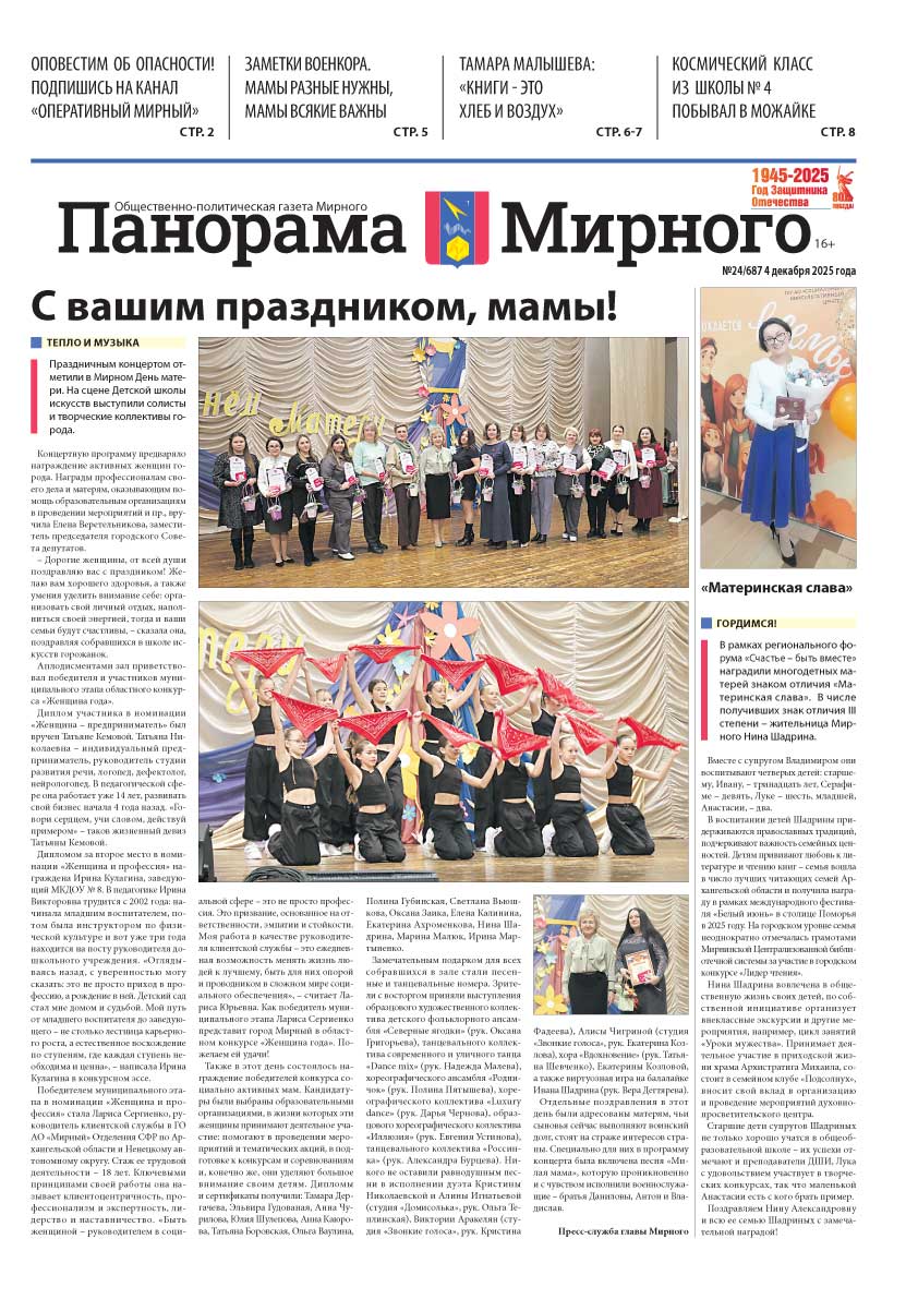 Газета «Панорама Мирного» №24/687 от 4 декабря 2025 года » Официальный сайт городского округа Архангельской области «Мирный»