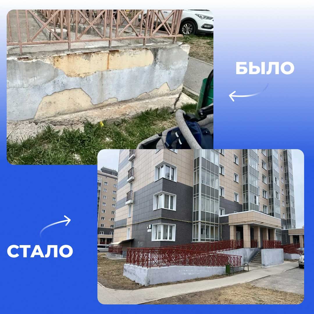 Не обошли вниманием и ремонт входных групп. Выполнены работы по восстановлению конструктивных элементов зданий: отремонтированы участки мягкой кровли; восстановлен цоколь некоторых домов общей площадью 470 м²; заменены фасадные элементы и очищены козырьки подъездов от мусора.