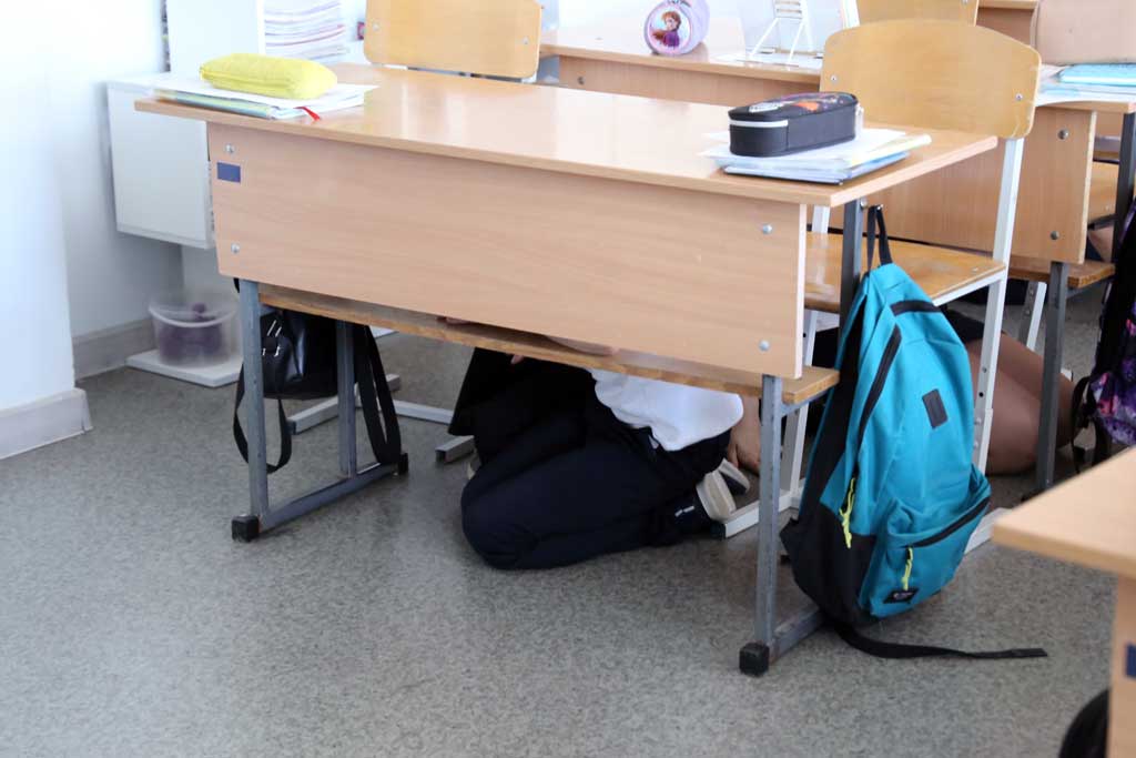 Если при отработке первой вводной от сотрудников и детей требовалось как можно лучше спрятаться внутри школы, но во втором случае надлежало как можно быстрее покинуть ее, так как в качестве сценария был предложен взрыв и обрушение у центрального входа. Через запасные выходы все устремились на улицу. Эвакуация 505 человек заняла три минуты. Для ликвидации условного пожара прибыли огнеборцы СПСЧ № 4 ФГКУ «Специальное управление ФПС № 18 МЧС России». Они проверили не только свои навыки, но и работоспособность пожарного гидранта, расположенного на территории школы.